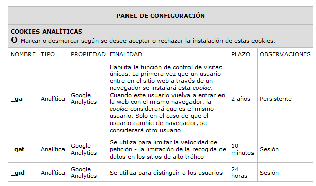 COOKIES UTILIZADAS EN ESTE SITIO WEB